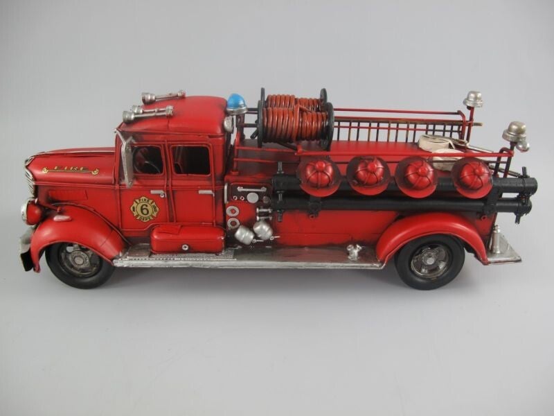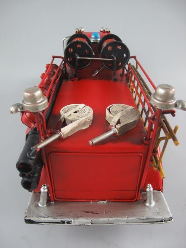 Met de hand gemaakte miniatuurmodel van een oude brandweerwagenGemaakt van metaal met de hoogste nauwkeurigheid, met vele mooie kleine details en beweegbare wielen.